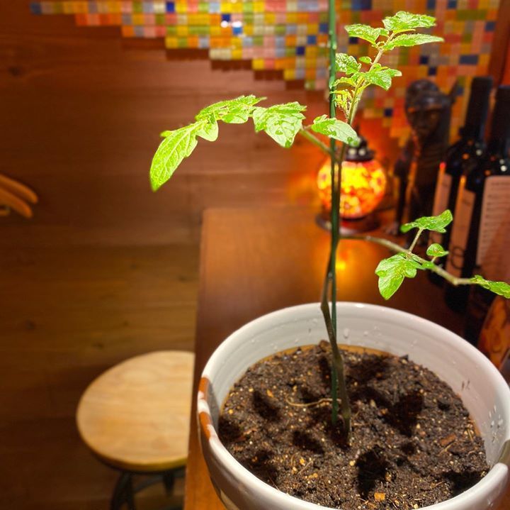 実はこの写真、一見すると普通の何かの苗にしか見えないんですが実は、1度完全に枯れてしまったトマトの苗の脇に生えてた小さな新たな苗だったんです🌱