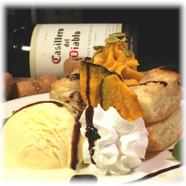 チョコソースがかかったカボチャクリームのアイスミルフィーユなんてぴったりでございます♪