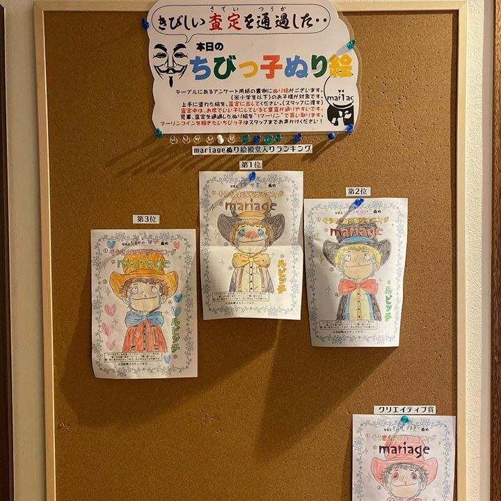 mariageでは塗り絵を綺麗に塗る事でその塗り絵を、マーリンコインでお店に買い取ってもらい展示する事ができるんですが