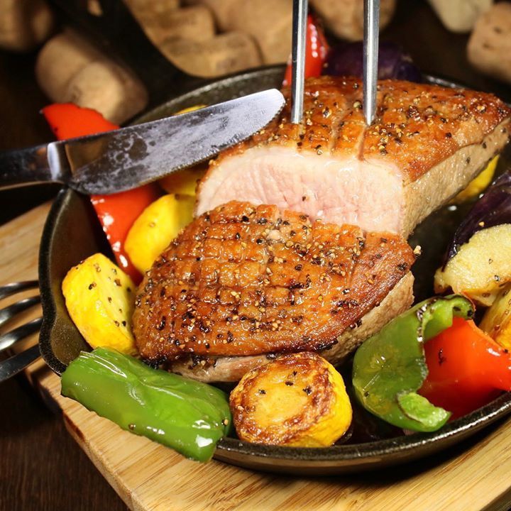 合鴨から出る旨味の洪水に遭った水々しい夏野菜たちによる鉄板の上で弾けるパッション🤩