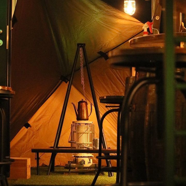 アラジンストーブを囲んでホットカクテルやコーヒーを飲みながらタバコも吸える何ともエモい空間がここ大泉学園に誕生しました😍