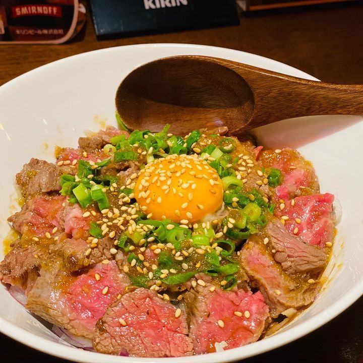 柔らかさを極限まで残した低温調理で仕上がったカイノミのローストビーフに特製の和風だれをかけて崩した卵黄と一緒にお口の中へかき込んだ時の快っ感🤤🤤🤤