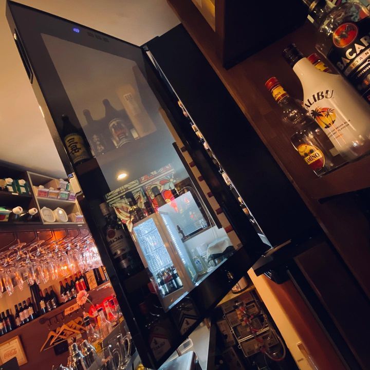 この鏡面になっている扉の奥で光るワイン達がかっこ良き🤩