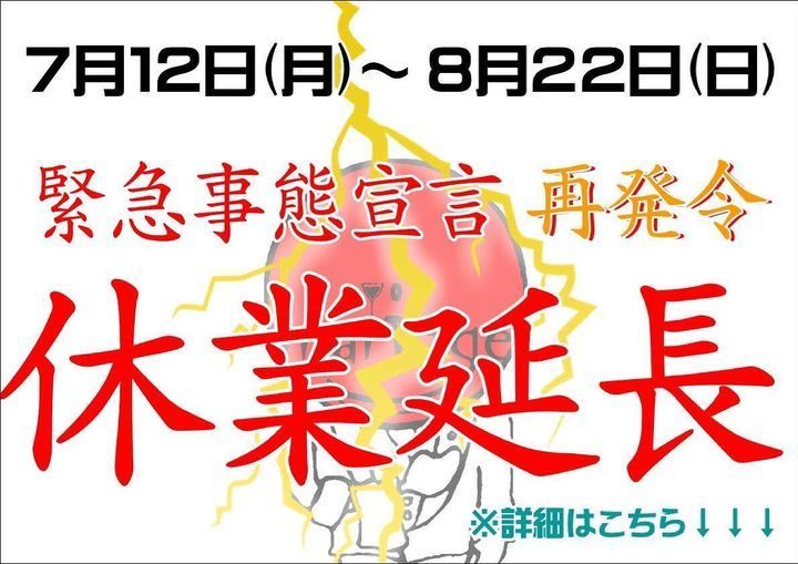 7/12(月)〜8/22(日)まで休業を延長します。