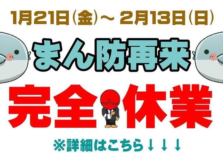 mariageを応援してくださる皆さんには大変ご不便をお掛け致しますが、今一度、mariageが再開される日までお身体に気をつけてお過ごしください🙇♂️